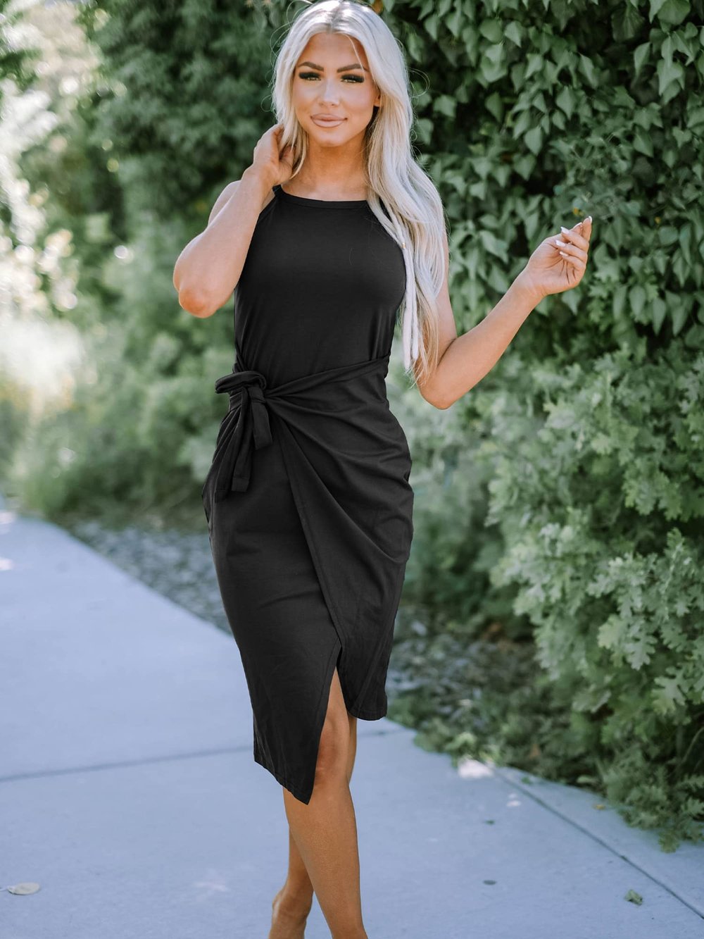 LUCY | Elegant Sleeveless Leaf-Print Midi Dress – Limited Summer Drop